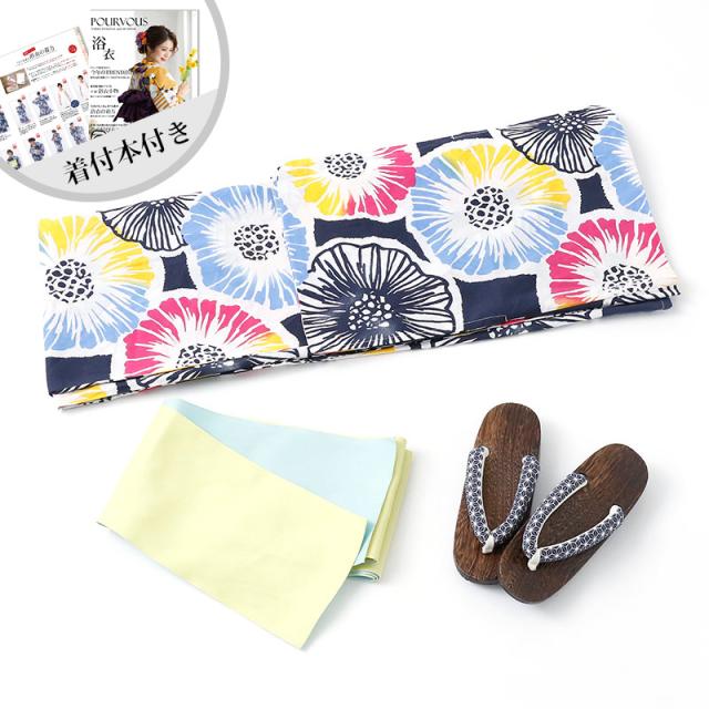 ◆4点セット(浴衣/着付け本/半巾帯/下駄)