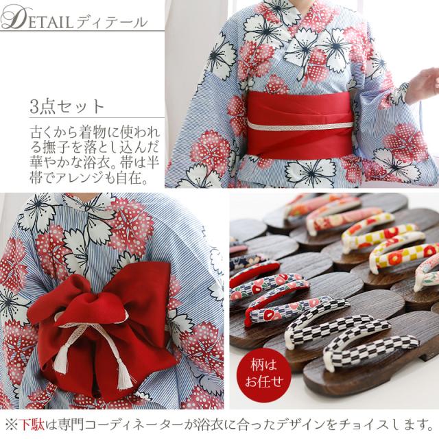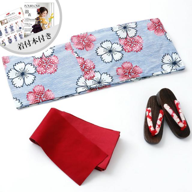 ◆4点セット(浴衣/着付け本/半幅帯/下駄)