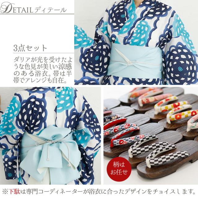 涼風ダリア 3点セット(半帯)【yu019】。20代・30代・40代・50代浴衣・レディース・セット・帯・レトロ・2点セット・3点セット・レトロモダン・向日葵・単品・大正ロマン・安い・子供・こども・人気・お得・uピン・親子・yukata・白地・半帯・紺・青・インナー・涼しい・かごバッグ・かご巾着・カワイイ・かわいい・キュート・クラシック・小さいサイズ・3Lや4L・・即日発送・送料無料・花火大会・夏祭り・2way・Ladies・あさがお・あじさい・インスタ・コスプレ・ジュニア・ストライプ・チェック・チェック柄・ツバメ・ドット・トンボ・トンボ玉 ・ネコ・パジャマ・ひまわり・ペア ・やばね・衣装・牡丹・花