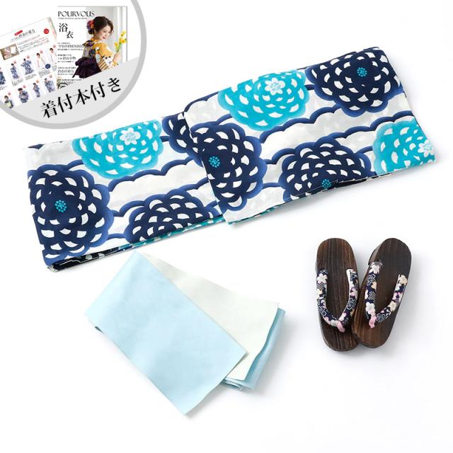 ◆4点セット(浴衣/着付け本/半巾帯/下駄)