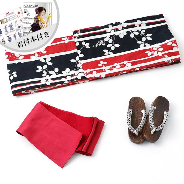 ◆4点セット(浴衣/着付け本/半巾帯/下駄)