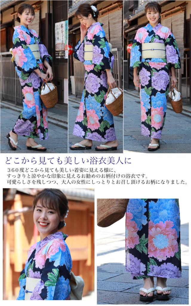 | 備考 | ※浴衣の柄の配置はモデル着用とまったく同じではございません。予めご了承下さいませ。 ※下駄は当店がコーディネートしてお選びさせて頂きます。 | |||