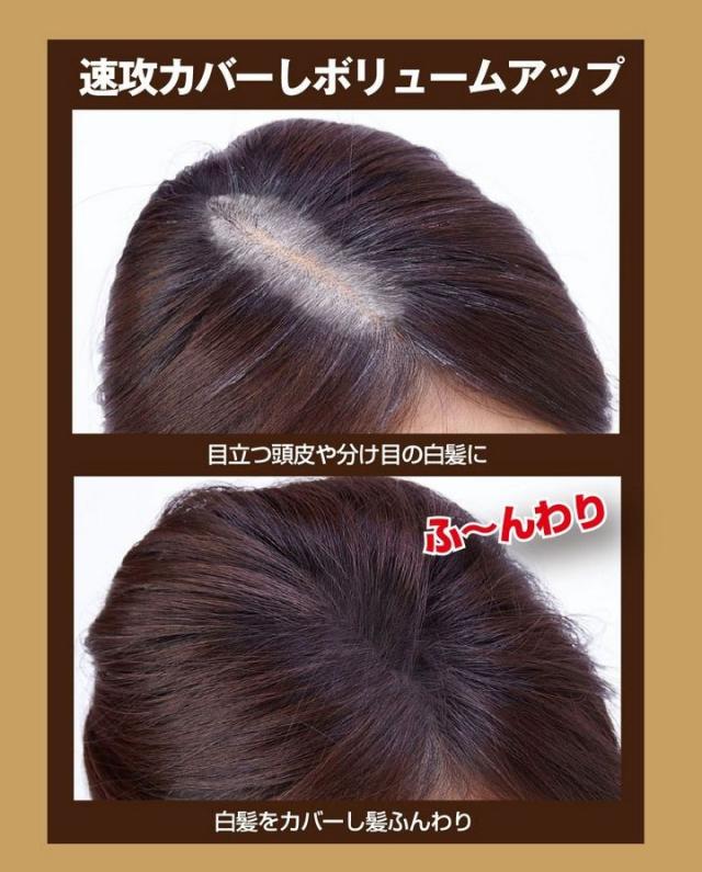 99%天然由来成分。速攻カバーしボリュームアップ、目立つ頭皮や分け目の白髪をカバーしふんわり。気になる部分にパフでポンポンするだけで簡単にカバー!