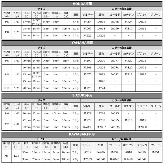 チタンボルト M8×25mm P=1.25 ブレーキディスク ローター ボルト ヤマハ車用 ゴールド JA072