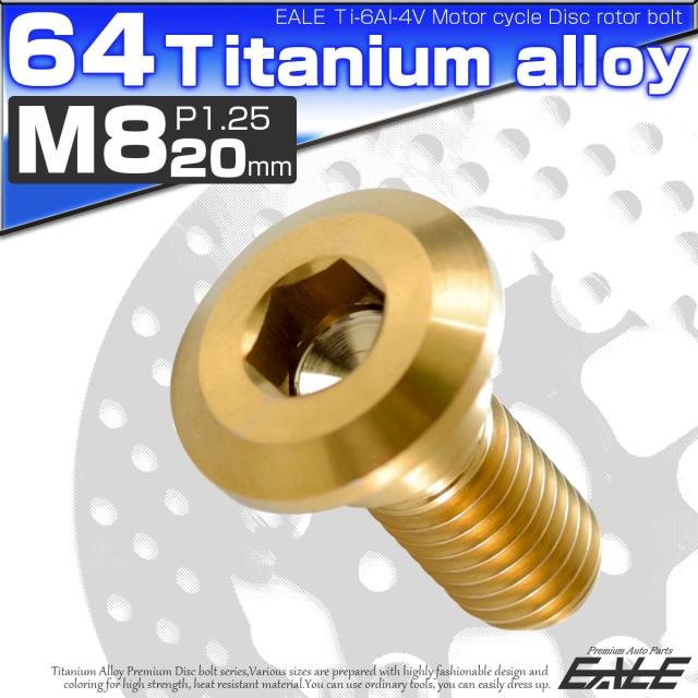 チタンボルト M8×20mm P=1.25 ブレーキディスク ローター ボルト ヤマハ車用 ゴールド JA078
