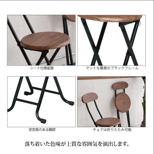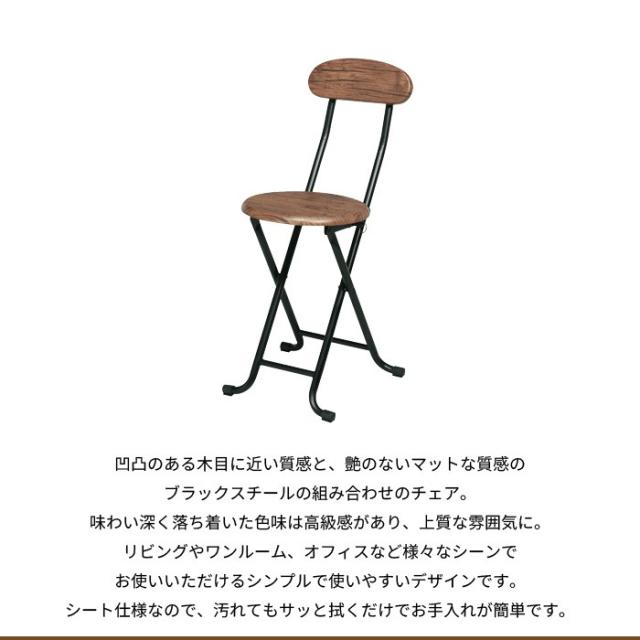 味わい深い質感のヴィンテージ調木目柄とスチールを採用したVintageシリーズの折りたたみチェア。