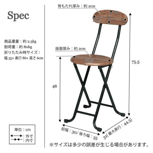 | [本体]幅35×奥行44.5×高さ75.5cm [折畳時]幅35×奥行86×厚み6cm |