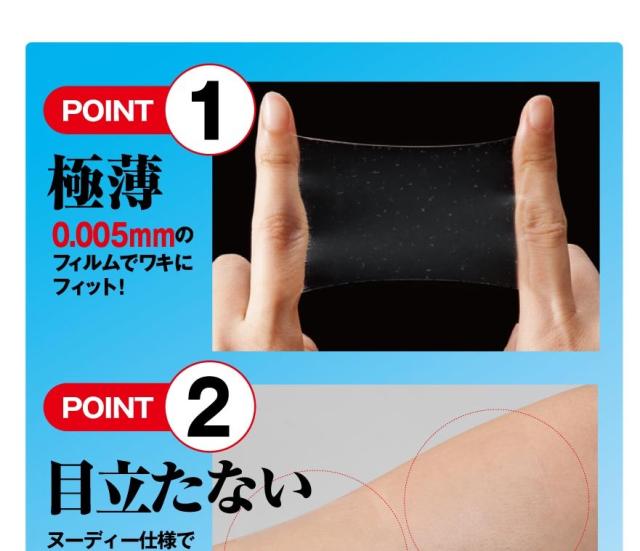 薄さ【0.005mm】の特殊透明フィルムで恥ずかしい汗ジミをブロック