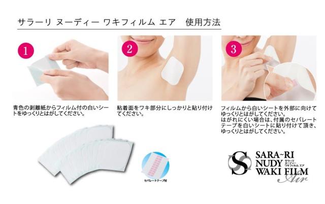 サラーリ ヌーディワキフィルム エア 3個セット 脇汗 ワキ汗 汗ジミ 透明フィルム 直貼り 胸汗 足汗