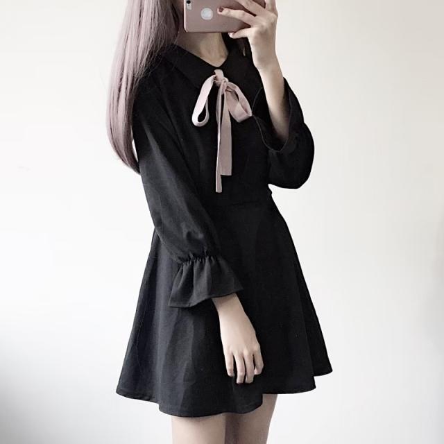 ピンクリボンがチャームポイントのダークブラックのワンピースです。