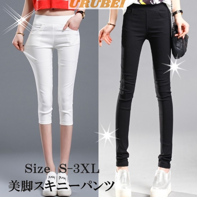 即納 即日発送 在庫処分 スキニーパンツ 大きいサイズ レディース スキニーレディース レギンス パンツ大きいサイズ スキニーパンツ 黒 白 ストレッチパンツ ブラック 新作 七分丈 カラーパンツ 通勤 通学 安い 小さいサイズ 着心地 プチプラ大 かわ大