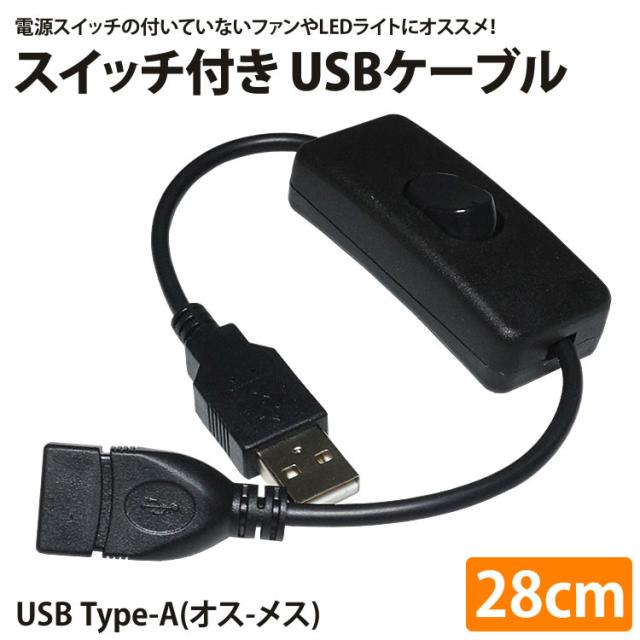 スイッチ付き USBケーブル 延長 28cm USB 電源スイッチ USB A オス メス オン オフ スイッチ PR-USBSW28【メール便 送料無料】