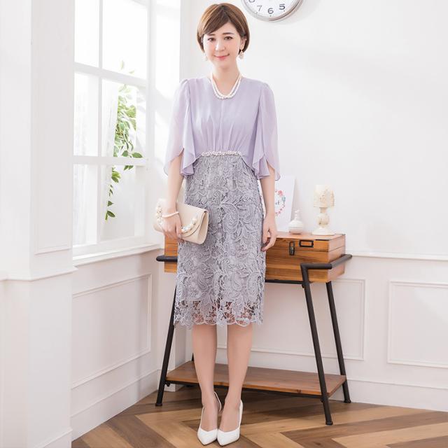 シフォンの袖とレーススカートが織りなす軽やかなエアリー感が魅力のフェミニンドレス。