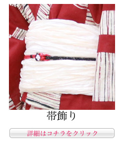 生成り地に赤の市松地に横縞が描かれたお柄は