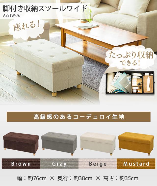 ★クーポンあり★ 椅子 チェア スツール 収納付き スツール収納 脚付き収納スツール ワイド ASSTW-76 コーデュロイ マスタード 座れる スツール アイリスオーヤマ