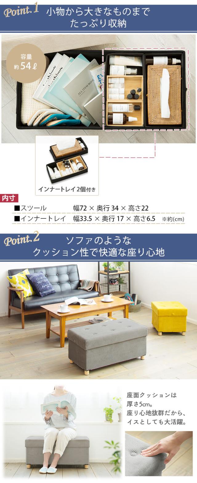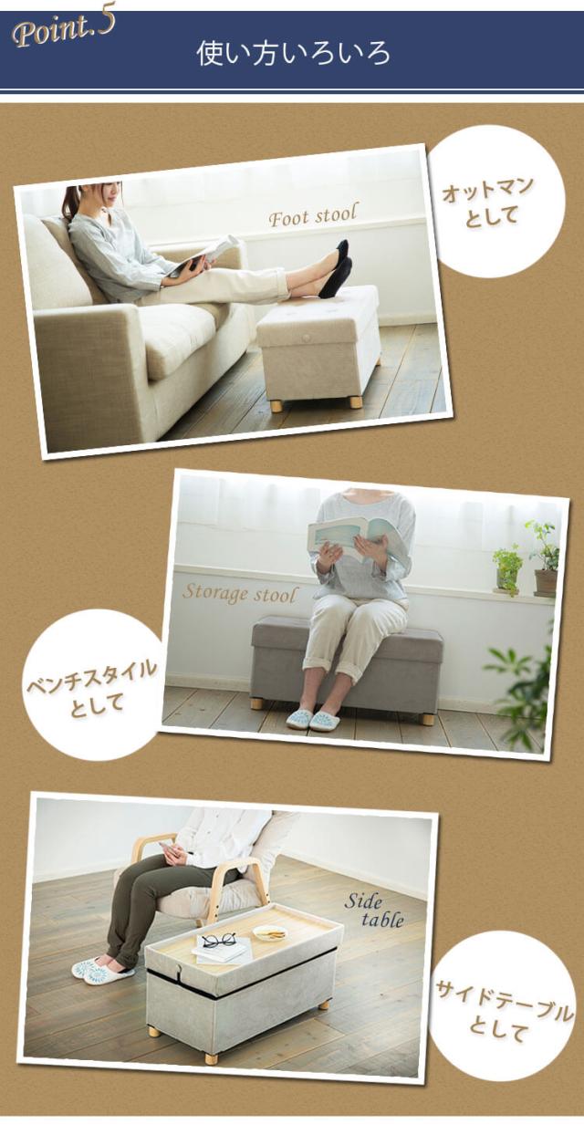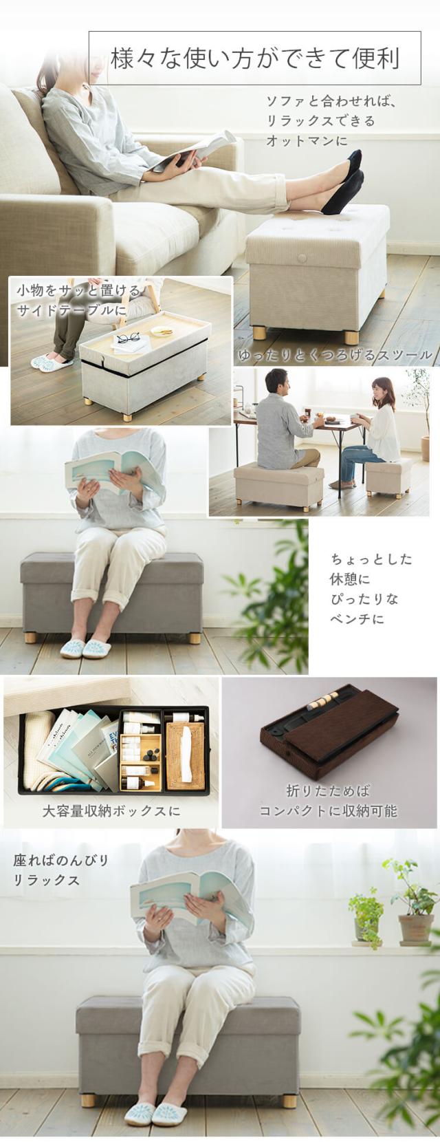 座る、小物の収納、オットマンとしても使える多機能スツールです。