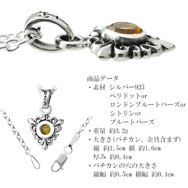メンズ ペンダント ネックレストップ 百合 ロンドンブルートパーズ ブルートパーズ ペリドット シトリン シルバー925 【新宿 銀の蔵】