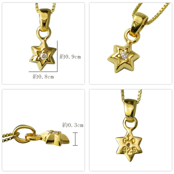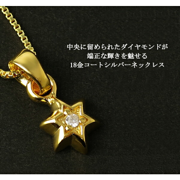 GRAN DEUR 星 スター 天然ダイヤモンド K18ゴールドコーティング シルバーネックレス(チェーン付き) シルバー925 銀 18金 ネックレス ペンダント