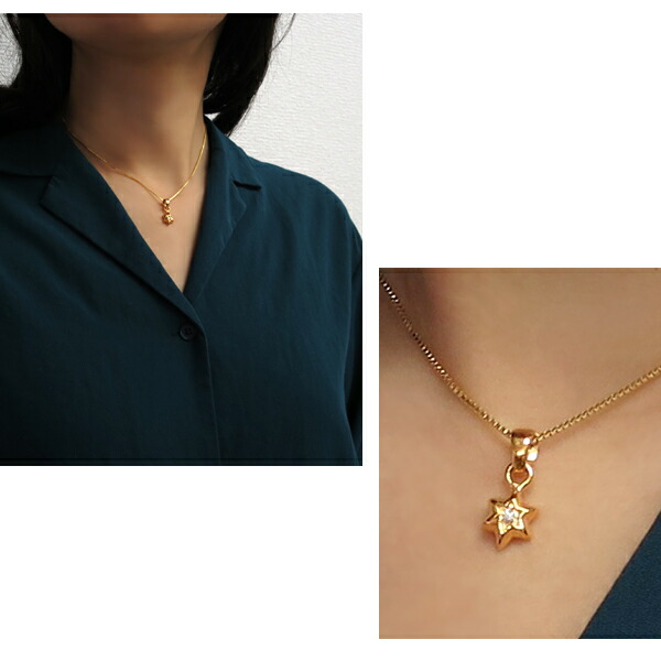 【GRAN DEUR】星 スター 天然ダイヤモンド K18ゴールドコーティング シルバーネックレス(チェーン付き)