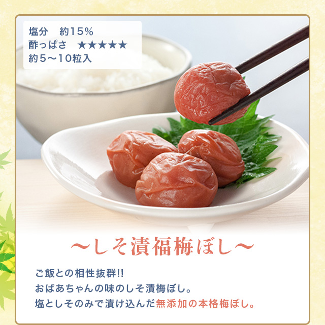 | うす塩味・福梅ぼし | しそ漬・福梅ぼし |