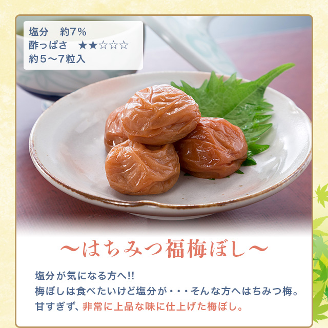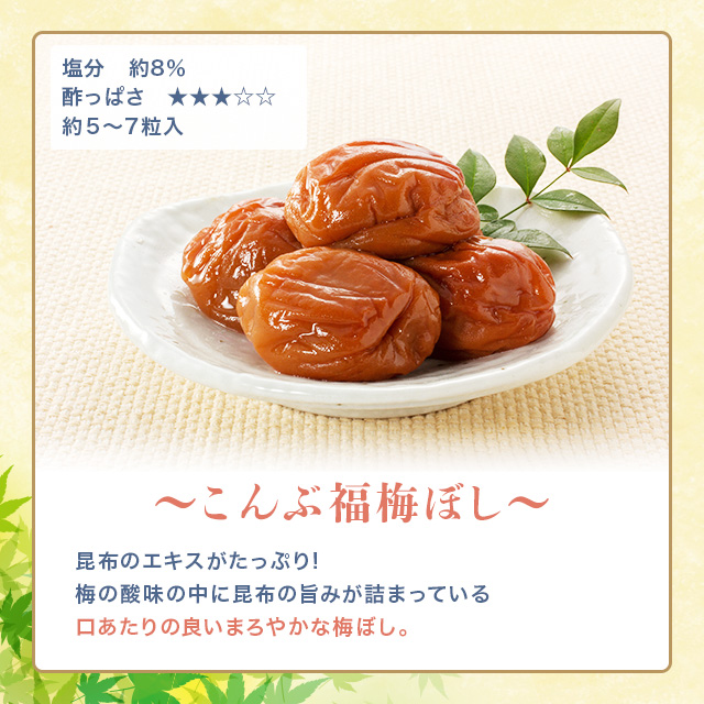 | はちみつ梅・福梅ぼし | こんぶ梅・福梅ぼし |