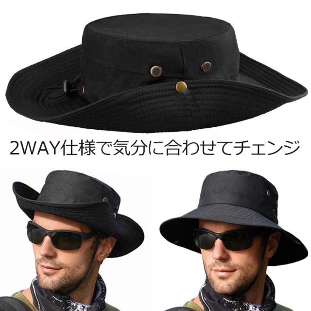 帽子 ハット 2WAY メンズ UVカット あごひも 熱中症対策グッズ メンズハット メッシュ 折り畳み 速乾 アウトドア 登山 釣り ゴルフ スポーツ 日よけ 野球帽 男女兼用