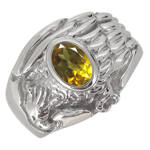 メンズ 指輪 リング プラチナ 鷲 鷹 イーグル シトリン オーバル おしゃれ ファルコン