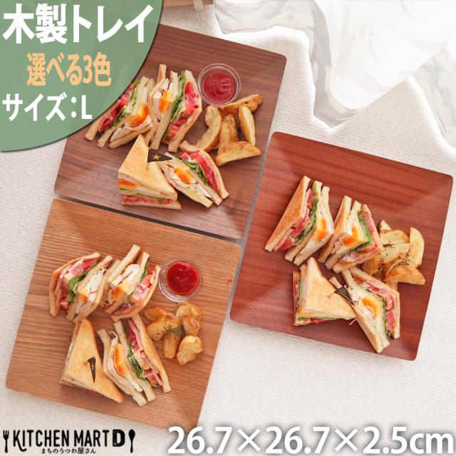 選べる3色 26cm 木製 木 スクエア プレート L 正角 角型 トレー トレイ 大皿 ウッド 天然木 合板 軽い 軽量 カフェ ランチ スタック wood plate ラッピング不可