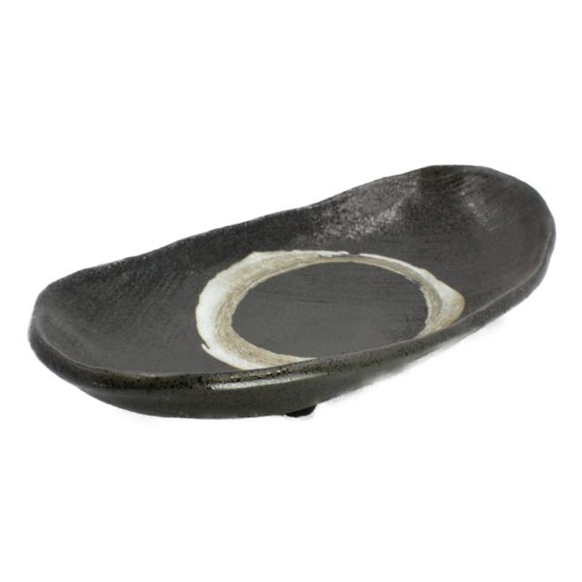 結晶大文字 黒 28cm三ツ足長盛皿 ブラック 美濃焼 皿 プレート 国産 日本製