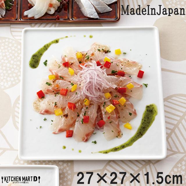 block ブロック 27cm 正角 スクエア プレート ホワイト スクエアー miyama 深山 ミヤマ ピザ皿 パスタ皿 サラダ 角皿 皿 食器 白磁 陶器 日本製 美濃焼 みずなみ焼 業務用 ポーセリンアート 絵付け用 レンジ対応 食洗機対応 ラッピング不可