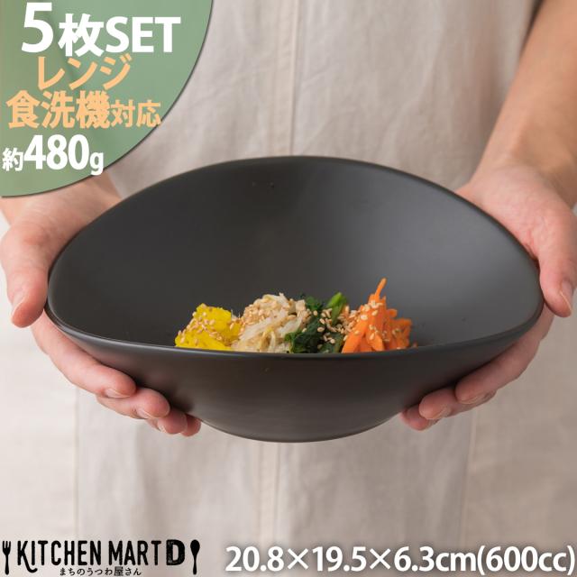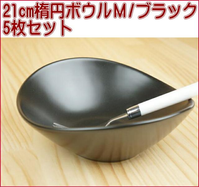 5枚セット 21cm楕円ボウルM ブラック600cc 黒い食器 カフェ オーバル サラダボウル 業務用食器
