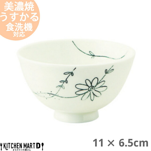 フラワーライン 茶碗 ご飯茶碗 飯碗 うすかる 美濃焼 11cm葵型(青)おしゃれ カフェ 白 食器 器 和食器 日本製 陶器 業務用食器