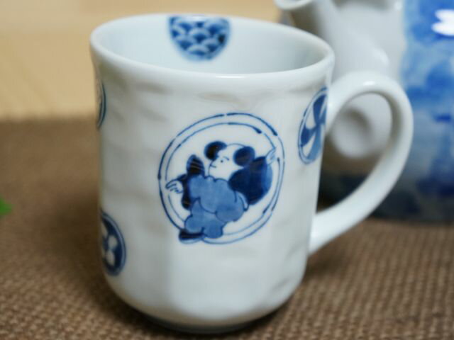 藍凛堂 丸紋唐子RI八角マグカップ 320cc美濃焼 和食器 日本製 陶器