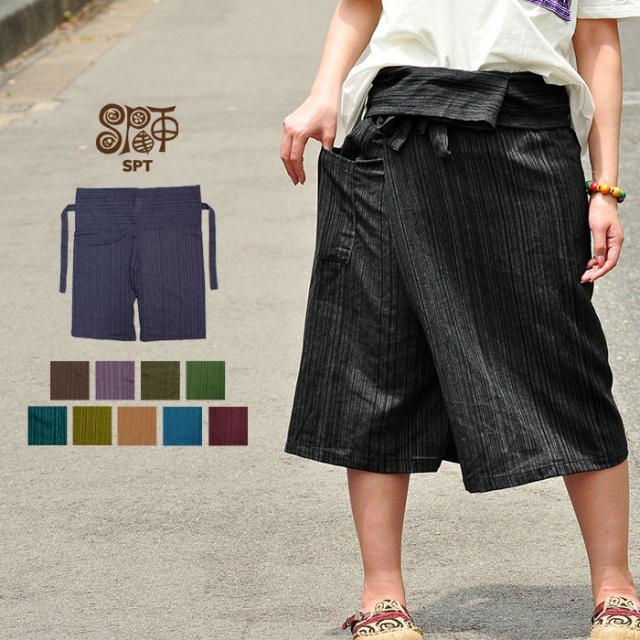 タイパンツ ユニセックス ストライプショートタイパンツ ブラック アジアン エスニック【メール便OK】