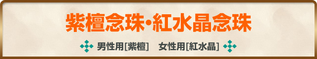 ●素材/男性用:紫檀・インド翡翠(アベンチュリン)・正絹房、女性用:紅水晶・正絹房