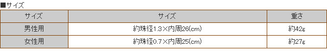 ●サイズ・重さ/男性用:約珠径1.3×内周26cm・約42g、女性用:約珠径0.7×内周25cm・約27g