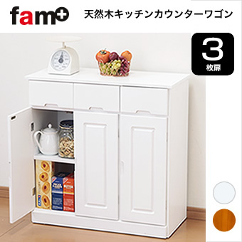桐製カウンターワゴン 3枚扉 カウンターワゴン キッチンカウンター収納 キッチンカウンターワゴン キッチンカウンター 完成品