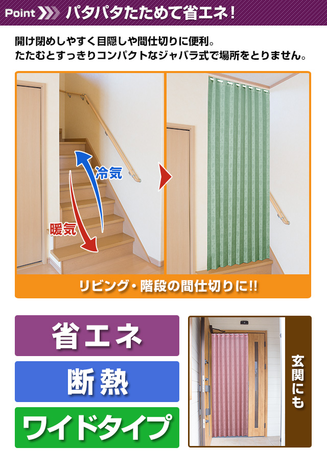 日本製 ワイド幅パタパタアコーディオンカーテン 突っ張り棒付き 250cm丈 エアコン 冷房 間仕切りカーテン ロング アコーディオンカーテン 間仕切り パタパタ カーテン パタパタカーテン