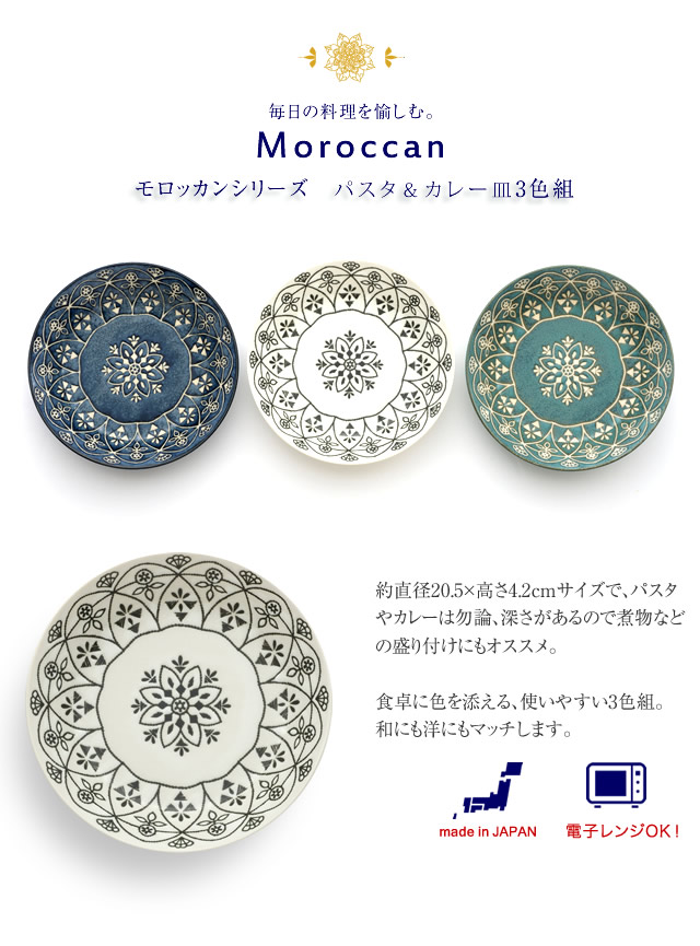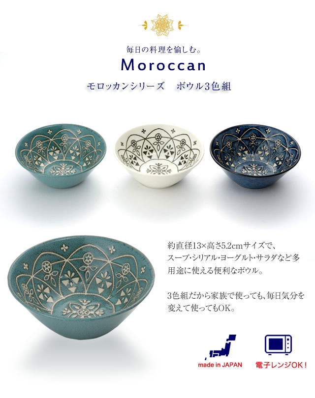 モロッカン ボウル皿3色組 代金引換不可 サラダ皿 サラダボウル サラダボール 深皿 丼 どんぶり お皿 食器 おしゃれ かわいい 日本製 電子レンジ対応 皿 セット