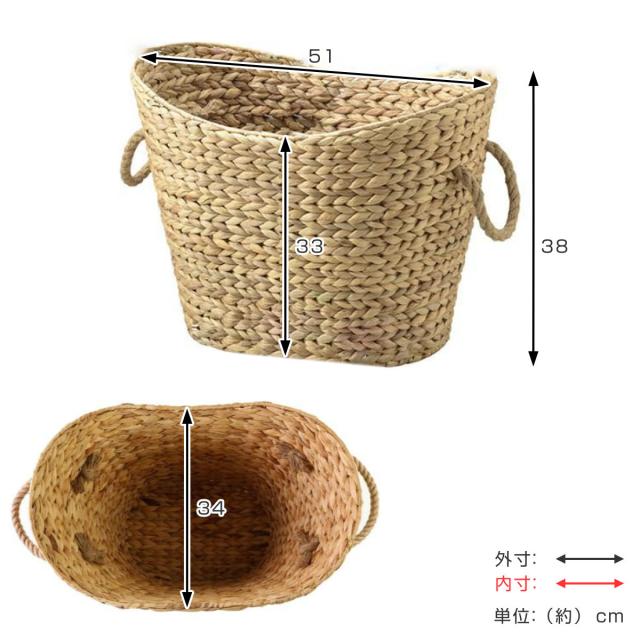 収納 バスケット ウォーターヒヤシンス 楕円形 大 持ち手付き 幅51×奥行34×高さ38cm ( ボックス カゴ 籠 天然素材 収納ケース 大型 オーバル かご 大容量 特大 荷物入れ 大きなバスケット おもちゃ 箱 ディスプレイ )
