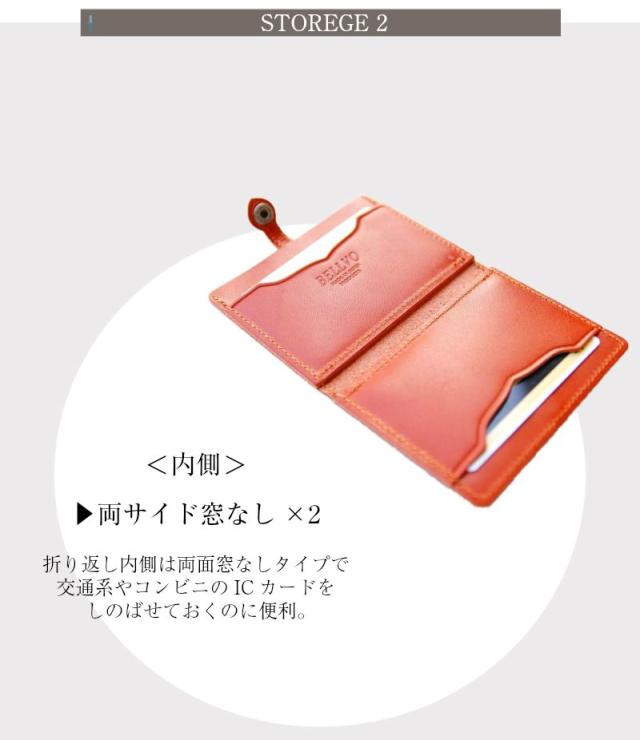見開き内側にも窓なしポケットが2箇所あるので、交通系ICカードやコンビニ決済用のICカードなどを入れておけば、通勤・移動もちょっとした買い物をこれひとつでOK!