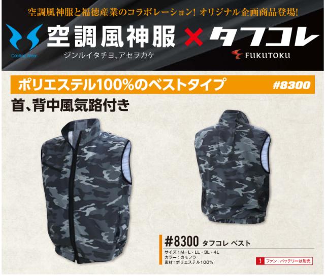空調風神服 ベスト カモフラ メンズ LL #8300 ウェアのみ ファンバッテリー別売 ポリエステル タフコレ 作業着 快適 現場