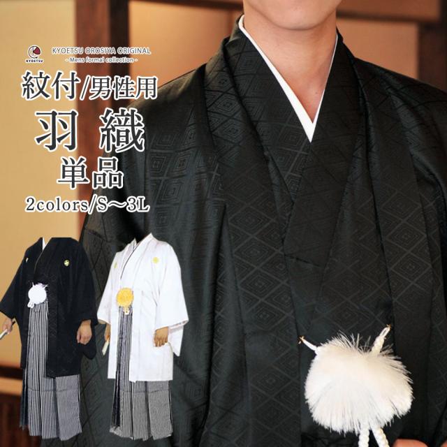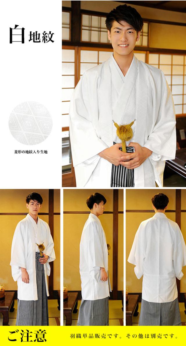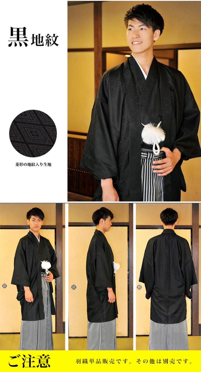 (男羽織 紋付) 洗える羽織 羽織 単品 メンズ 和装 地紋付き 成人式 卒業式 黒紋付 白紋付(rg)