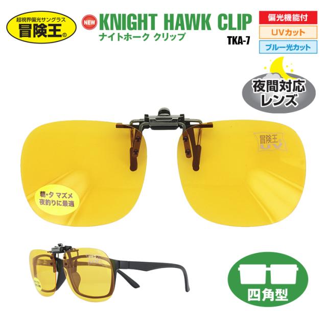 偏光サングラス 夜間運転 メガネの上から 跳ね上げ クリップサングラス クリップオン サングラス レディース メンズ UVカット 夜釣り 夜間対応 ドライブ 釣り フィッシング キャンプ マズメ ブルーライトカット イエロー 冒険王 ブランド TKA-7 定形外郵便 送料無料