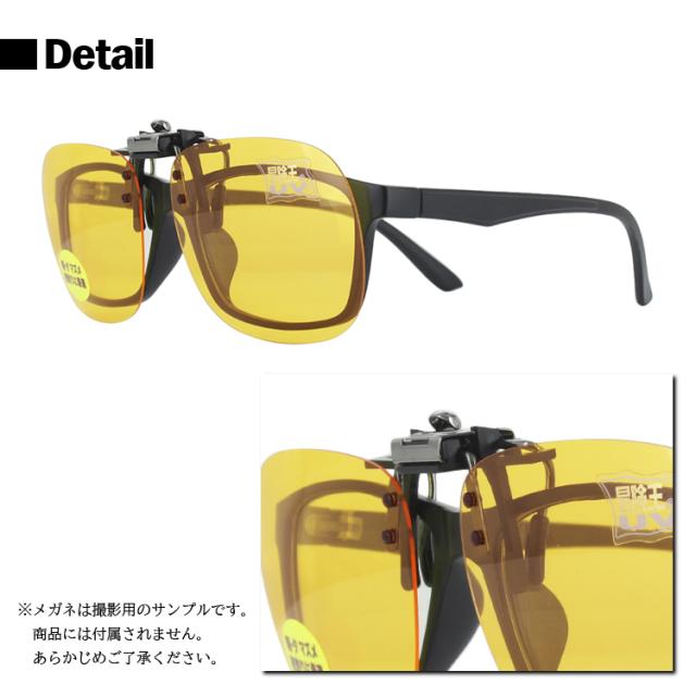 フレームカラー:ガンメタ(クリップ式) レンズカラー:ルミナスイエロー レンズサイズ(片目):縦50mm 横61mm ※対応フレーム幅:(約)5mmまで | レンズ材質:プラスチック フレーム材質:合金 仕様 夜間対応レンズ ブルー光カット UVカット 四角型 |