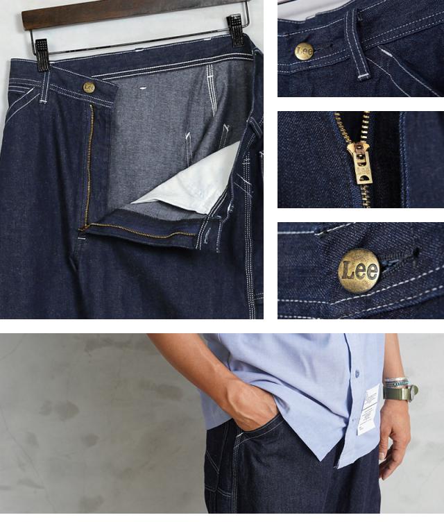 ペインターパンツは元々、画家やペンキ職人が作業をする際に着用していたため、ハンマーを吊るすためのハンマーループ、刷毛や筆などを収納するためのツールポケットなど他のパンツにはないディテールが特徴。バックポケットのタグやブランドロゴが配されたヴィンテージ感のあるボタン使いなど、細部のパーツ一つ一つに至るまでLeeのこだわりが込められています。
