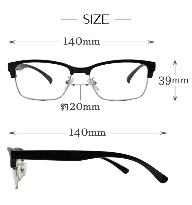 【サイズ】幅140mm・テンプル140mm、レンズサイズ(中心部):縦36mm×横52mm