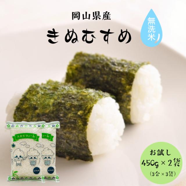 令和7年産 岡山県産 きぬむすめ 無洗米 900g【450g (3合)×2袋】米 お米 ポイント消化 送料無料 お試し メール便