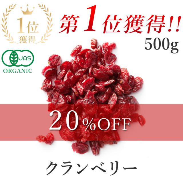 ドライフルーツ クランベリー 500g オーガニック 砂糖不使用 有機JAS認証 有機リンゴ果汁 有機ひまわり油使用 ドライフルーツ 無漂白 保存食 非常食 大容量 業務用 お得用 送料無料