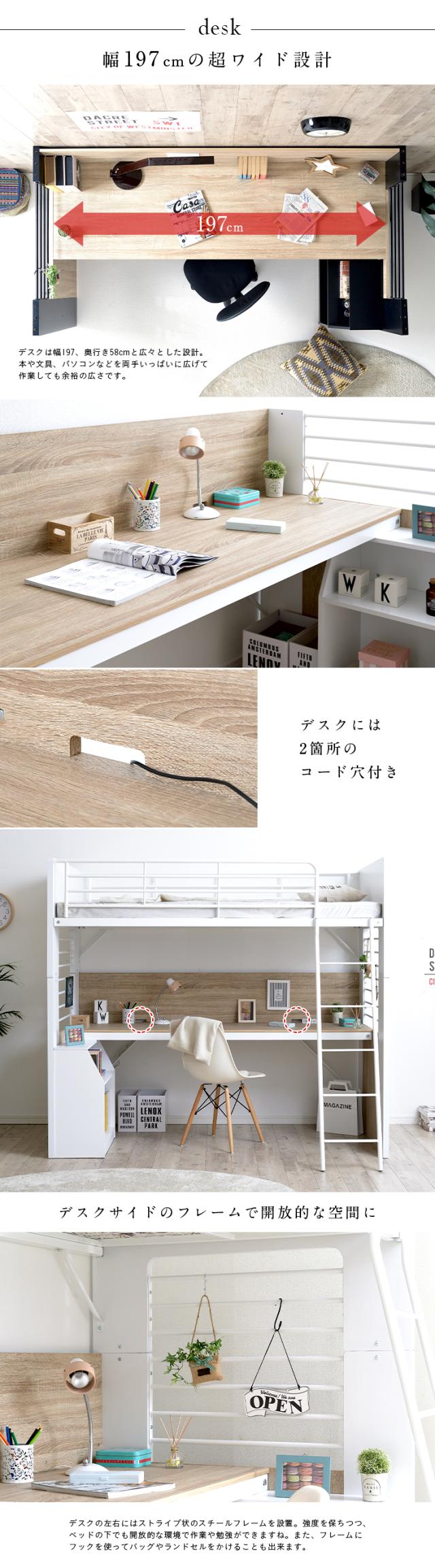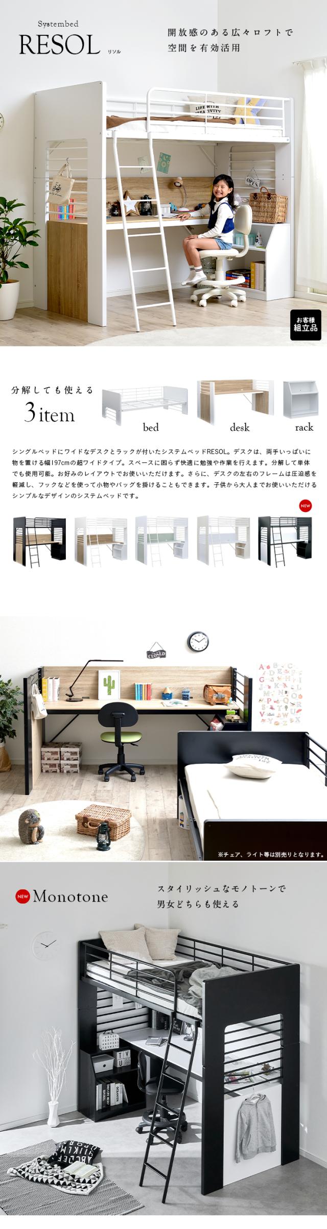 ロフトベッド システムベッド 子供 ベッド ロフトベット システムベット デスクベッド システムデスク システムデスクベッド ハイタイプ 木製 学習机 学習デスク 子供 大人 おしゃれ 分割使用可能 RESOL(リソル) 5色対応